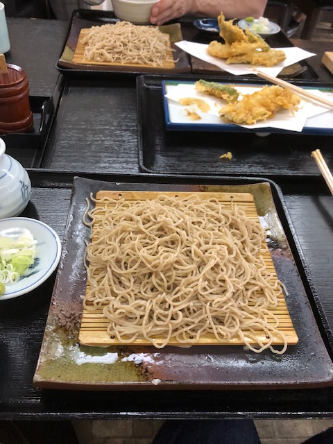 9月25日(土曜日)昨日ほどは暑くなく、夏から秋へ一歩進んだ気候です。土屋さんと私は茅ヶ崎から小田原へ車で行きました。西湘バイパスを通って行きました。左は一面海で素晴らしい景色!小田原城城址公園の近く、ういろうのお店の数軒おいて並びにある、東喜庵(とうきあん)というおそば屋でお昼を食べました。三の丸御膳を頼みましたが限定10食なので残念ながら売り切れ!あなごせいろにしました。1900円。ここが素晴らしく美味しかったです!珍しい縮れた細いそばに、濃いめのつゆ。今まで食べた中でもしかしたら一番?というほど美味しいおそばでした。土屋さんは地鯵天せいろを注文。1700円。鯵を一枚もらいましたが、こちらも美味でした!その他、とろろ(単品。メニューにありませんが相談したら出してくれました)を取りましたが、2人で1つで十分な量でした。このお店は帰りがけに見たら5時には閉まっていました。コロナのうちのことだと思います。普段の営業時間は11時から15時、17時から20時。第2,第4火曜日は11時から15時。毎週水曜日は定休日だそうです。