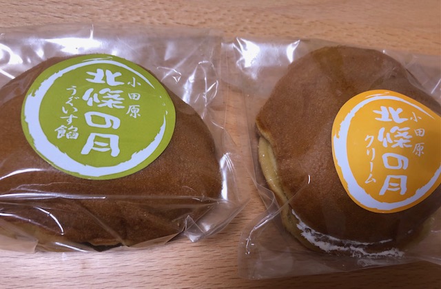 10種類ほどの小さめのあんパンがウインドウの中と上に並んでいます。「人気のものは?」選びあぐねた時によく使うきき方で尋ねると、「こしあんと粒あんはやはり人気ですね」とのこと。その2つと、「売れています」と書いてあった金時あんを購入して小田原用水を尋ねました。